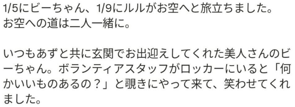 賢く、いたずらっ子でマイペースなビーちゃんのことがみんな大好きでした!