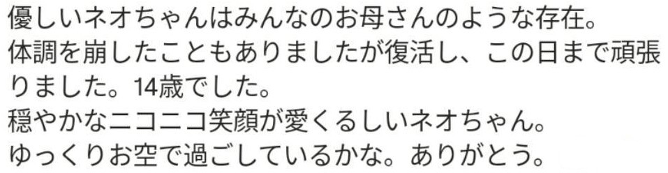 14歳のネオが19日水曜日の夜中2:05に眠ったまま亡くなりました。