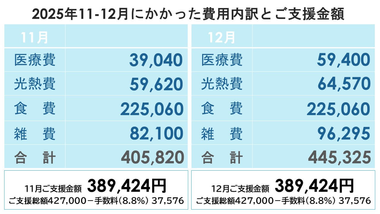 マンスリーサポーター様からのご支援の収支報告(2025年11-12月分)をREADY FORサイトにて行いました。
